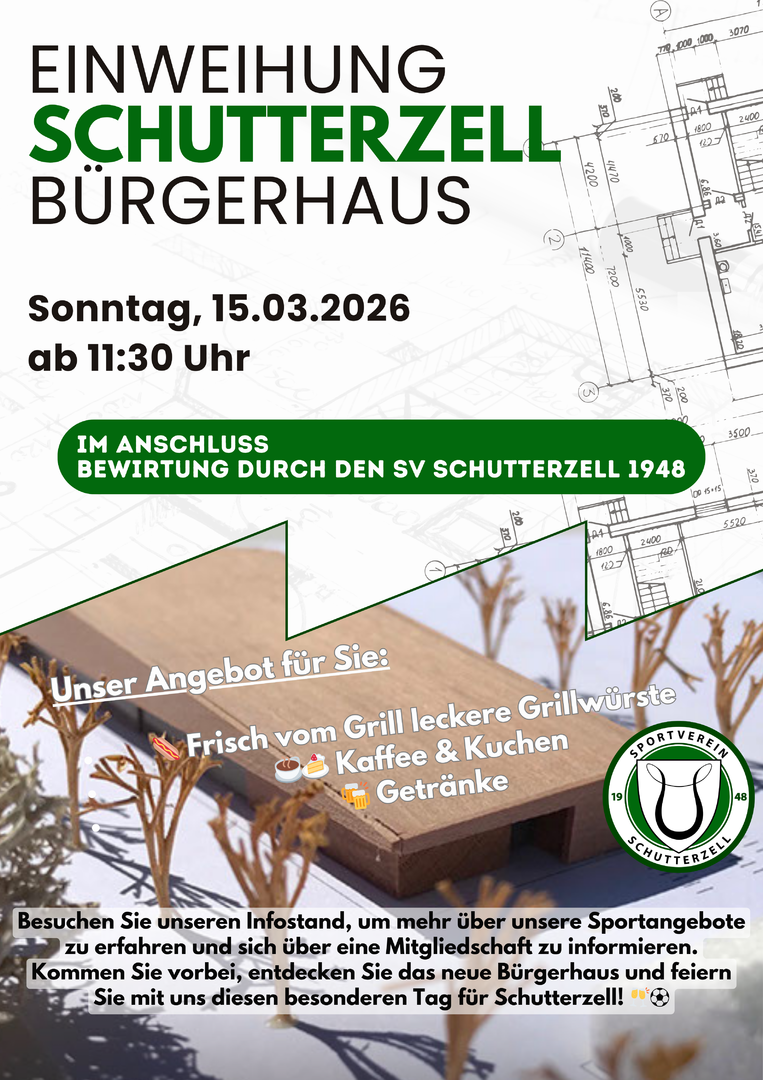 Die Gemeinde lädt die gesamte Bevölkerung zur offiziellen Einweihung ein, und wir vom SV Schutterzell freuen uns darauf, den festlichen Rahmen mit unserer Bewirtung zu begleiten.